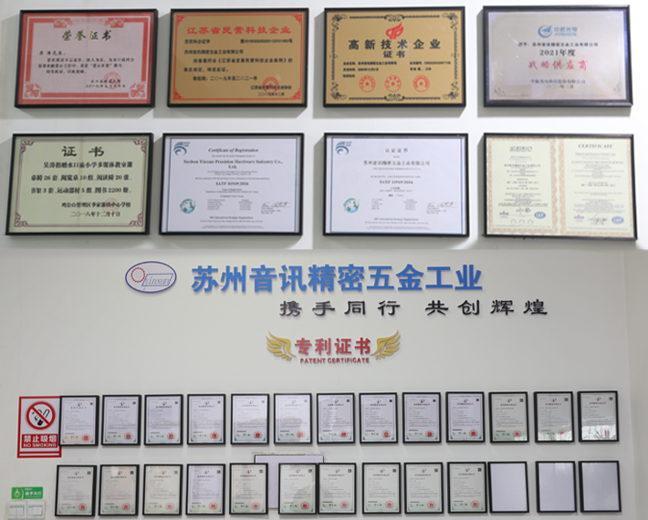 蘇州音訊精密五金工業(yè)有限公司創(chuàng)立于2005年,注冊(cè)資本1000萬(wàn)元,坐落在素有園林之城、人間天堂的蘇州市, 公司總投資4500余萬(wàn)元,生產(chǎn)及測(cè)量設(shè)備總投入90余臺(tái),占地面積約6000平米,員工總?cè)藬?shù)120多人,年銷(xiāo)售額近7500萬(wàn)人民幣,目前下屬一家分公司“蘇州音訊精密五金工業(yè)有限公司信陽(yáng)分公司”和控股子公司“信陽(yáng)航捷訊智能科技有限公司”。蘇州音訊精密是一家專(zhuān)業(yè)從事高精密零部件的設(shè)計(jì)研發(fā)、制造,以及非標(biāo)零部件訂制加工的高新技術(shù)企業(yè) ; 產(chǎn)品廣泛應(yīng)用于新能源汽車(chē)、工業(yè)通訊連接器、航空航天、人工智能、醫(yī)療器械、機(jī)械傳動(dòng)、電子電器等領(lǐng)域,目前公司擁有ISO9001和 IATF16949雙重質(zhì)量管理體系; 并已獲得“江蘇省高新技術(shù)企業(yè)”、“江蘇省民營(yíng)科技企業(yè)”等榮譽(yù)稱(chēng)號(hào), 公司目前有發(fā)明專(zhuān)利一項(xiàng)、實(shí)用新型專(zhuān)利10余項(xiàng),常年被主要客戶(hù)評(píng)選為"戰(zhàn)略供應(yīng)商"、"優(yōu)秀供應(yīng)商"、"主力供應(yīng)商"等美譽(yù)!